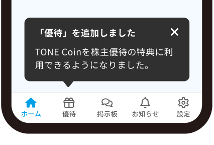 - 株主DAOアプリでTONE Coinを2コイン以上お貯めください。